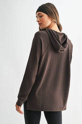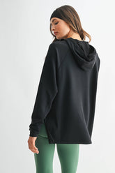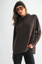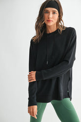 Easygoing and elevated, the Laguna Dune Hoodie is your new everyday essential. Made from our signature sand-washed scuba fabric with a buttery-soft, spongy hand feel, this pullover delivers comfort without compromising on style. It features a slouchy mock neck with adjustable drawstrings, relaxed raglan sleeves, and a longline silhouette with 8" side slits and a subtle high-low hem for added movement. Finished with a classic kangaroo pocket, it’s the perfect piece to throw on post-yoga, pre-coffee, or anytime in between.