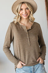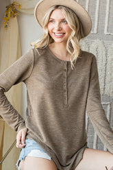 Indulge in neutral-loving style with our Must Be Fate Soft Brown Button Top. This classic top features a two-tone design, long sleeves, and functional buttons for added convenience. The curved hemline adds a touch of elegance to your everyday look. Feel confident and effortlessly stylish in this must-have top.